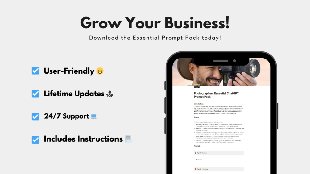 Welcome to the Photographers Essential ChatGPT Prompt Pack.